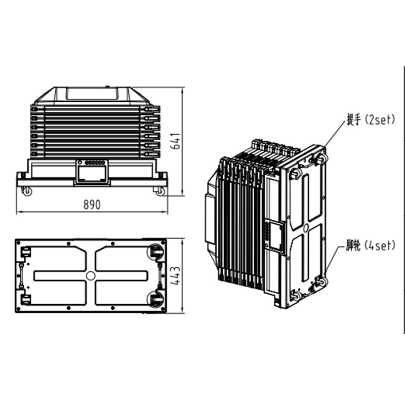 Размеры в сложенном виде: 890(В) × 641(Д) × 443 (Ш) мм