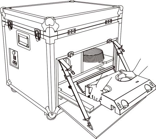 *Note: Before closing the cover of flight case, the mouse must be back to the mouse drop zone which is under the upper cover plate with shake-proof cotton layout. Or the screen will be touched the mouse and pressed.