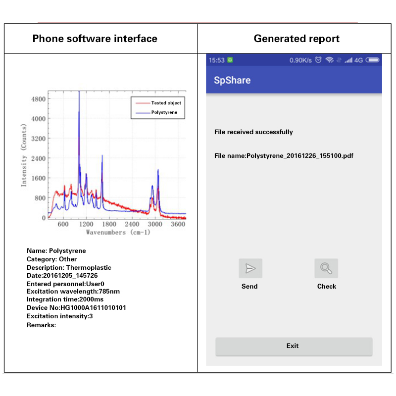 Совместное использование мобильного телефона: программное обеспечение позволяет создавать отчёты в формате PDF. После установки приложения на мобильный телефон вы можете подключиться к нему по Wi-Fi и отправить отчёт на него, а мобильное приложение сможет просматривать и отправлять отчёты.